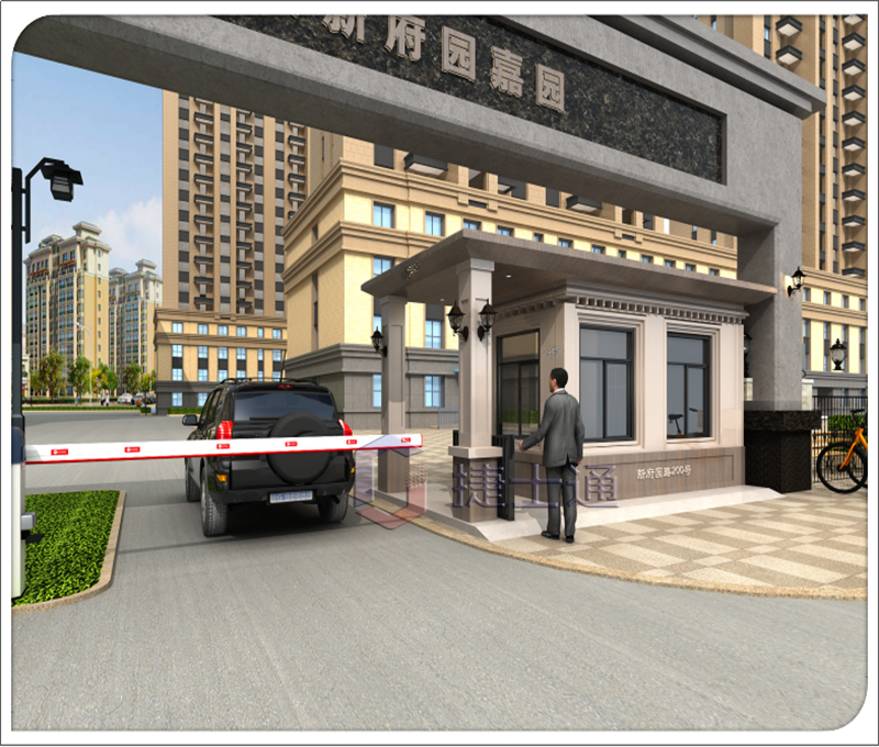 小區(qū)帶有人行道的門衛(wèi)值班室