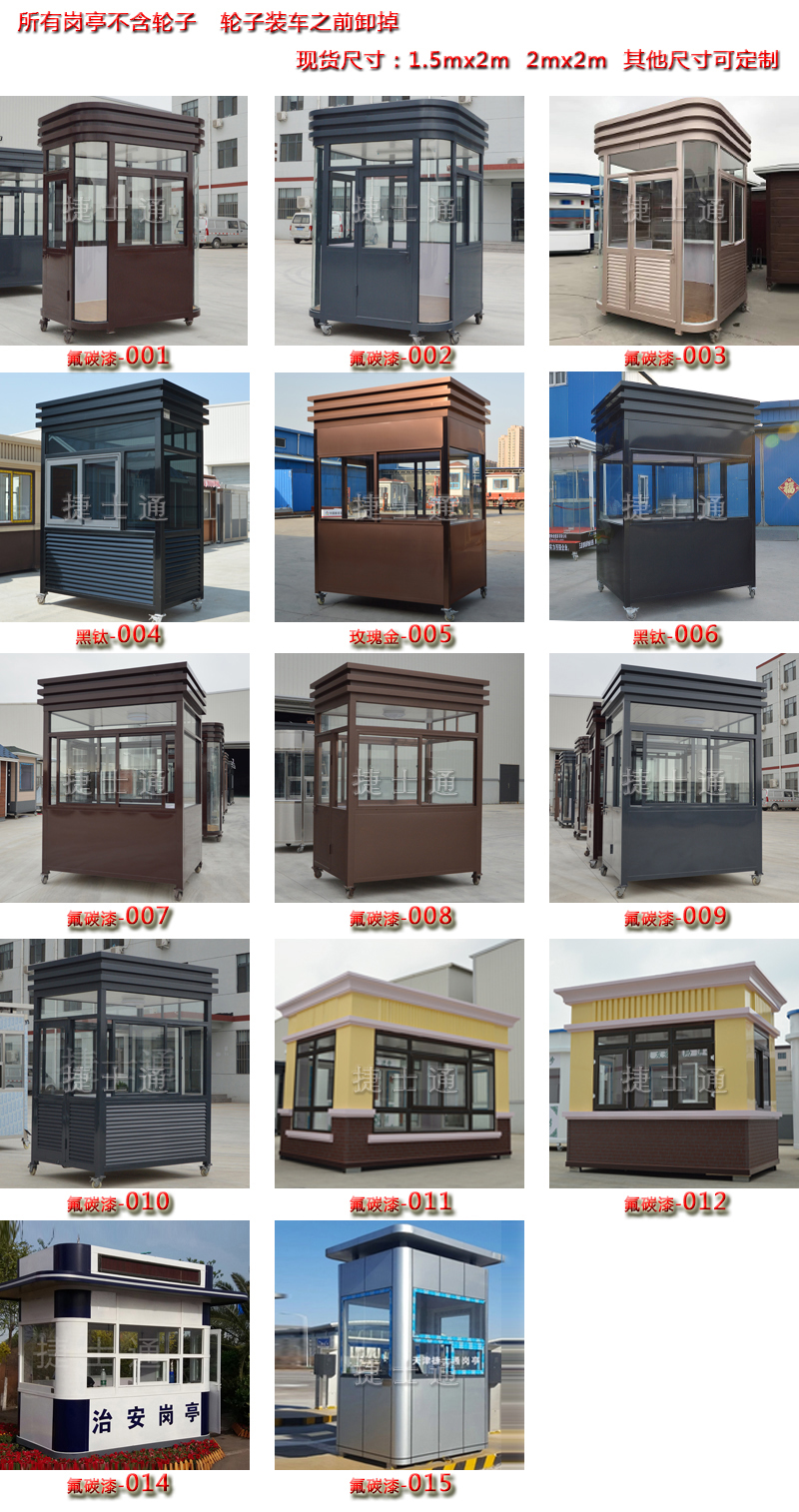 有氟碳噴漆崗?fù)?,有金屬雕花板崗?fù)?,有不銹鋼崗?fù)ぃ惺圬浲?,有吸煙亭,需要的買家,請(qǐng)與客服聯(lián)系,并說下崗?fù)さ木幪?hào),方便業(yè)務(wù)給您報(bào)價(jià)。 有氟碳噴漆崗?fù)?,有金屬雕花板崗?fù)ぃ胁讳P鋼崗?fù)?,有售貨亭,有吸煙亭,需要的買家,請(qǐng)與客服聯(lián)系,并說下崗?fù)さ木幪?hào),方便業(yè)務(wù)給您報(bào)價(jià)。