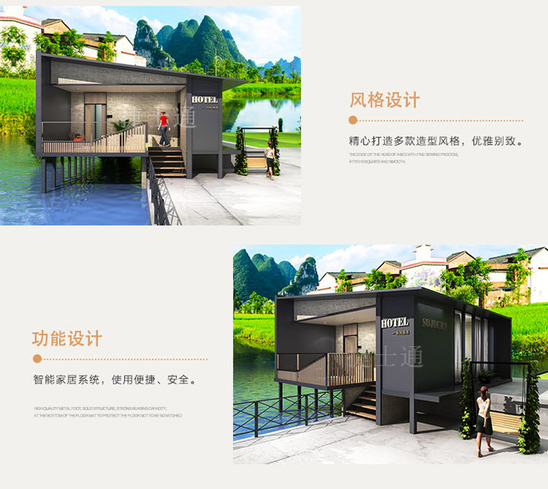 標準配置 :外墻:優(yōu)質(zhì)金屬雕花板/氟碳漆板/纖維水泥板可選。纖維水泥板有好的防水性能,在衛(wèi)生間,浴室等高濕度的地方,仍能保持性能的穩(wěn)定,不會膨脹或變形。 內(nèi)墻:復合木地板/纖維板水泥板......龍骨:優(yōu)質(zhì)鍍鋅方鋼龍骨焊接。室內(nèi)吊頂:優(yōu)質(zhì)PVC吊頂/納米纖維板可選。底座:鍍鋅方鋼焊接加黑竹木板模板。室內(nèi)地板:優(yōu)勢防滑鋁板/防滑瓷磚可選。門窗:斷橋鋁門窗、防盜門 。其他:照明、配電系統(tǒng)......可根據(jù)客戶需求進行特殊定制。聯(lián)系電話:15822882616,公司網(wǎng)址:m.sn16888.com。