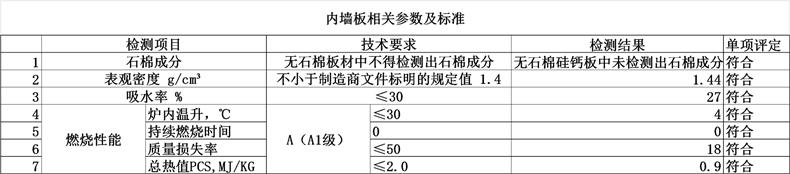 內(nèi)墻板特點:采用高密度硅酸鈣材質(zhì)【A1級不燃防火】;板材不含對皮膚有害的石棉;表觀密度1.44g/cm;吸水率低,有防潮防水的作用;高溫后質(zhì)量損失率僅為18%。