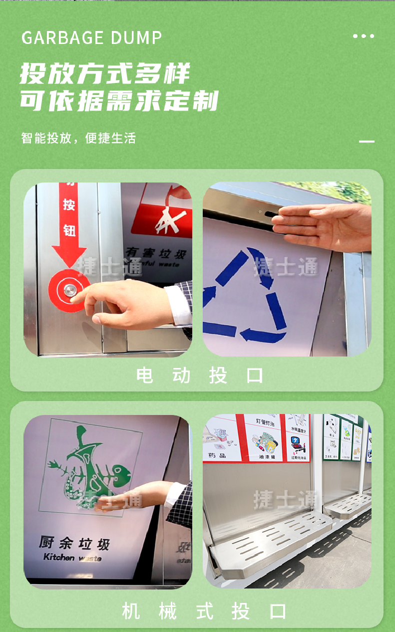1.機(jī)械式投口:包含腳踏式、手推式,使用金屬制品制作,方便中老年人使用,實(shí)用性較強(qiáng)。
