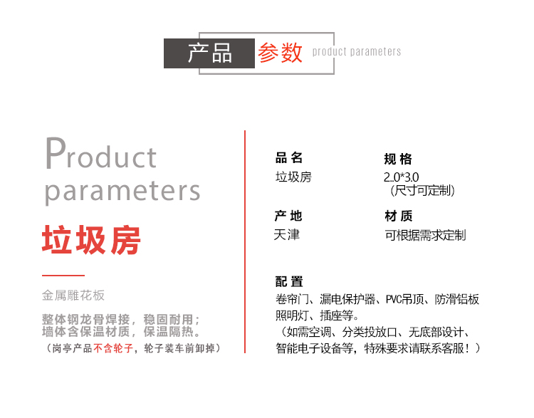 天津捷士通崗?fù)な侵圃鞃復(fù)ぁ?a href="http://m.sn16888.com">垃圾房的生產(chǎn)廠家,產(chǎn)品從工廠直接到終端客戶,省去中間環(huán)節(jié),讓客戶利益大化,所有垃圾房產(chǎn)品只收取生產(chǎn)成本及加工費(fèi)用。我們推薦的環(huán)保垃圾房不僅是物美價(jià)廉,也是貨真價(jià)實(shí),一分錢一分貨,款式多樣,只有您想不到的,沒有我們做不出的!如有需要,請撥打我們的免費(fèi)熱線:15822882616 ,24小時(shí)隨時(shí)在線!垃圾房價(jià)格的決定因素:樣式+大小+用材 。公司具有雄厚的技術(shù)力量與經(jīng)濟(jì)基礎(chǔ),以及完善的經(jīng)營管理體制。我們?yōu)楦纳瞥鞘协h(huán)境,美化我們的生活做著不懈的努力。 垃圾房產(chǎn)品優(yōu)勢:垃圾房的樣式大小用材,都可以根據(jù)客戶的要求來進(jìn)行量身定制,致力打造稱心的環(huán)保垃圾房。