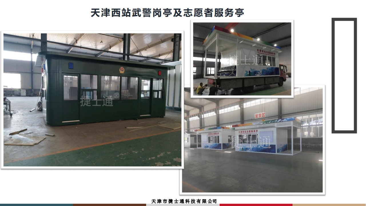 天津市捷士通科技有限公司從創(chuàng)建以來,一直潛心致力于崗?fù)さ脑煨蛣?chuàng)新、品質(zhì)的提升,短短幾年時(shí)間,成為了同行業(yè)的佼佼者。公司的高速發(fā)展,離不開公司高素質(zhì)的人才隊(duì)伍和先進(jìn)的經(jīng)營管理模式。捷士通崗?fù)ひ猿霰姷钠焚|(zhì),優(yōu)質(zhì)的性能和優(yōu)雅的外觀受到廣大消費(fèi)者的追捧,成為黨政機(jī)關(guān)、企事業(yè)單位、場館、高端住宅區(qū)、停車場、售賣場所、旅游景區(qū)的優(yōu)選產(chǎn)品.中國石油、天津西站、天津東站、天津市容委、天津建筑設(shè)計(jì)院、天津南開大學(xué)、天津(水滴)體育館、正信集團(tuán)、寧發(fā)集團(tuán)、濱海旅游區(qū)、游輪母港。 天安門服務(wù)亭、兩會(huì)安檢亭、朱日和軍演防彈崗?fù)ぁ⒀胍暲首x亭、碧桂園地產(chǎn)、高速公路收費(fèi)崗?fù)?/a>、華夏幸福地產(chǎn)、北京世園會(huì)志愿者服務(wù)亭等等都是問我們的客戶。廠家咨詢電話:15822882616 公司網(wǎng)址:m.sn16888.com
