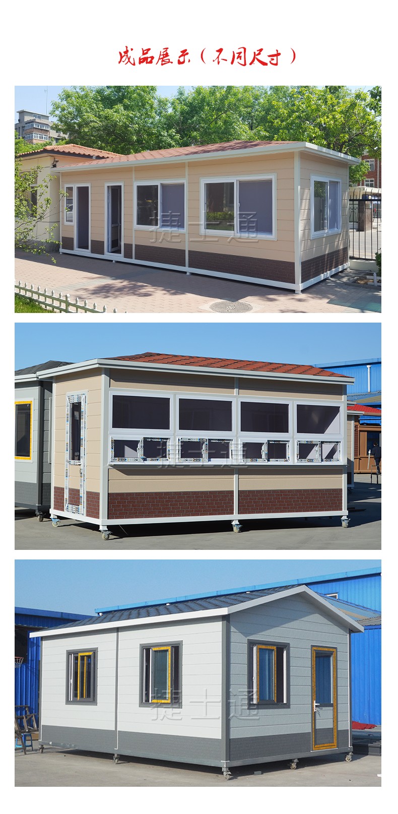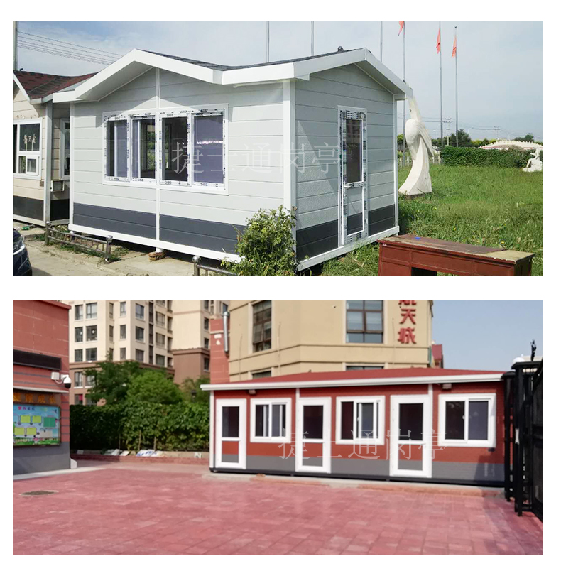 天津捷士通崗?fù)S家定制各類移動房屋:治安崗?fù)?、警?wù)室、移動辦公室、垃圾分類房、售貨亭、移動廁所等,房屋外墻常用優(yōu)質(zhì)金屬雕花板材料,材質(zhì)顏色眾多,如粉色墻體配底部紅磚塊圖案,米黃色墻體配底部紅條紋圖案,白色墻體配灰色磚塊,白色墻體配紅磚塊,等等 很多種類供您挑選。也可按要求配置客戶需要的顏色,金屬雕花板主體結(jié)構(gòu)為:
