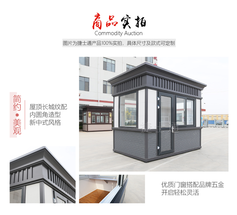 戶外保安崗?fù)た筛鶕?jù)用戶的要求設(shè)計(jì)制造,室內(nèi)可配置各種輔助裝置和不同檔次內(nèi)飾,適合市政、商業(yè)、社區(qū)、公園等多個(gè)領(lǐng)域,有崗?fù)?、保安崗?fù)?、治安崗?fù)?、垃圾房、環(huán)保公廁、設(shè)備房、售貨亭,等多條產(chǎn)品線。