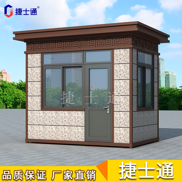 真石漆門衛(wèi)崗?fù)?/a>,尺寸都是可以定制,主體框架采用方鋼龍骨焊接,主體鋼管為100mm的管,底部為100mm的管,都是一體焊接而成,外部墻體是真石漆5遍漆完成,內(nèi)部是保溫板,內(nèi)部是防火內(nèi)墻板,底部可以采用防滑地板或者木地板