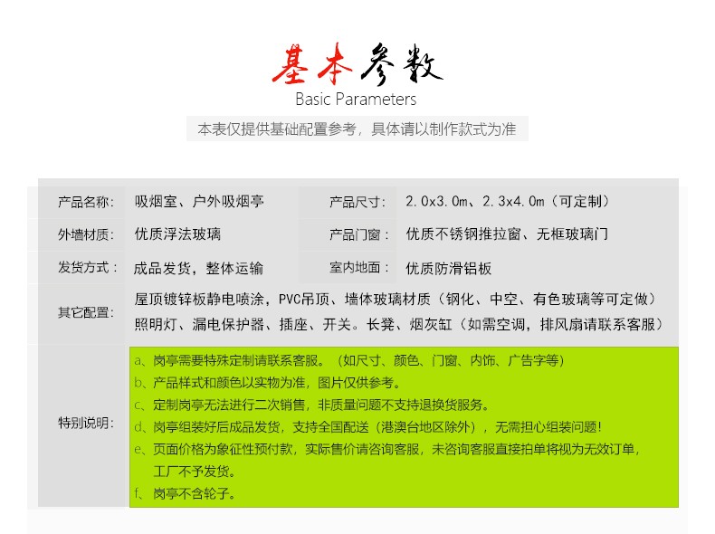 玻璃鋼崗?fù)こ叽绻潭?,有多種崗?fù)ゎ伾蛇x擇,按需定制,為了更好地杜絕二手煙,也為了保護(hù)環(huán)境衛(wèi)生。在公眾場(chǎng)合專用于吸煙者使用的小房子,就是吸煙亭?,F(xiàn)代化吸煙亭,具有凈化空氣的功能,是環(huán)境保護(hù)和健康的守護(hù)者。一般吸煙亭的要求,都是以不銹鋼管作為框架,再加上鋼化玻璃為外觀。這樣的吸煙亭,外觀時(shí)尚現(xiàn)代,內(nèi)部舒適便捷,成為大多數(shù)人選擇吸煙亭的款式。聯(lián)系電話:15822882616 公司網(wǎng)址:m.sn16888.com