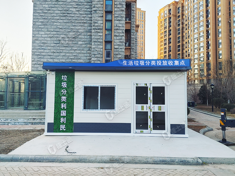 捷士通生產(chǎn)的這款垃圾分類收集點(diǎn)為簡(jiǎn)單的步入式的垃圾房,外墻的材料選用金屬雕花板的材料,門采用的是地簧門,能起到很好的垃圾房門的保護(hù)作用,此款垃圾房是在天津地區(qū)使用的,是政府在年底前需要檢查的項(xiàng)目,步入式的垃圾房分類有人值守和無人值守這兩種,有人值守一般是有人在里面提醒分類和進(jìn)行積分,另外一種是無人值守,采用的是不需要積分的形式,后期回頭保潔人員進(jìn)行二次分揀。