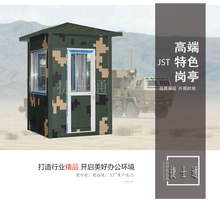 防彈崗?fù)?/a>廠家所研制的防彈崗?fù)ぎa(chǎn)品,采用了防彈鋼板及防彈玻璃,有效保護(hù)崗?fù)?nèi)執(zhí)勤戰(zhàn)士的安全;崗?fù)ど显O(shè)有射擊孔,在滿足達(dá)到防彈功效的同時(shí),又方便戰(zhàn)士在崗?fù)?nèi)使用 ;頂部有活動頂窗鋼板可以打開進(jìn)行通風(fēng)換氣。也可根據(jù)需求,調(diào)整門的位置及開門的方向和射擊孔的位置;此類崗?fù)げ捎娩摻Y(jié)構(gòu)及玻璃墻設(shè)計(jì)合理;崗?fù)さ拈T、窗具有全智能化功能,崗?fù)で伴芸筛鶕?jù)天氣變化自動伸縮;內(nèi)部配有空調(diào),更加人性化,讓哨兵感覺四季如春。另外,根據(jù)需要內(nèi)部所配置的擴(kuò)音系統(tǒng)更增強(qiáng)了崗?fù)さ墓δ苄院蛯?shí)用性。 聯(lián)系電話:15822882616,公司網(wǎng)址:m.sn16888.com